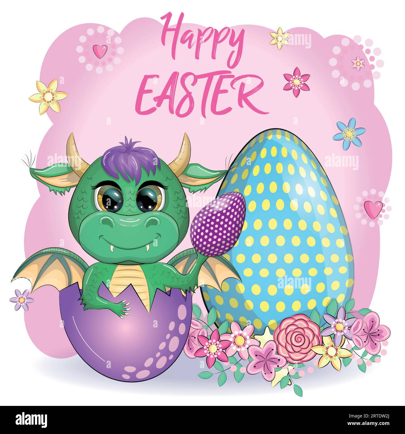 Source : www.vecteezy.comCute cartoon green baby dragon with an easter egg. Symbol of 2024